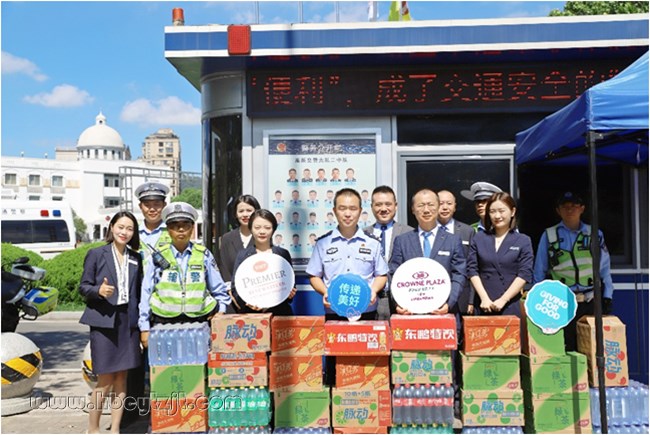 合肥皇冠假日酒店總經(jīng)理戴慶豐先生表示:“交警同志們頂烈日、戰(zhàn)酷暑,守護(hù)市民出行安全,是當(dāng)之無愧的城市英雄。我們特意準(zhǔn)備這些飲品,希望能為大家及時(shí)補(bǔ)充水分、緩解暑氣,以此表達(dá)誠摯的敬意。”